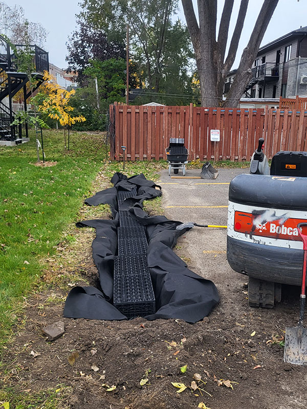 Avec les pluies diluviennes que nous recevons depuis quelques années, beaucoup de propriétaires réalisent que leur terrain ne gère pas de façon adéquate les eaux de surface. Souvent les pentes du terrain ou la gestion des gouttières sont la source du problème. Cela peut résulter en des infiltrations d’eau, des chicanes de voisinage, l’impossibilité de jouir de votre terrain, etc. Nous vous proposons des solutions innovantes pour gérer et amoindrir les effets négatifs de ces coups d’eau répétés que nous subissons chaque été.