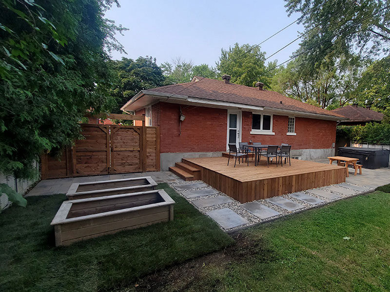Nous vous offrons un service personnalisé d'aménagement paysager englobant la réalisation de travaux de bois, la pierre naturelle, la plantation et la mise en place de plates-bandes, les travaux d'éclairage été encore plus. Il en va de même pour les travaux de pavage et dallage de béton lorsqu’ils accompagnent les travaux de menuiserie extérieure, notre principal champ d’expertise.